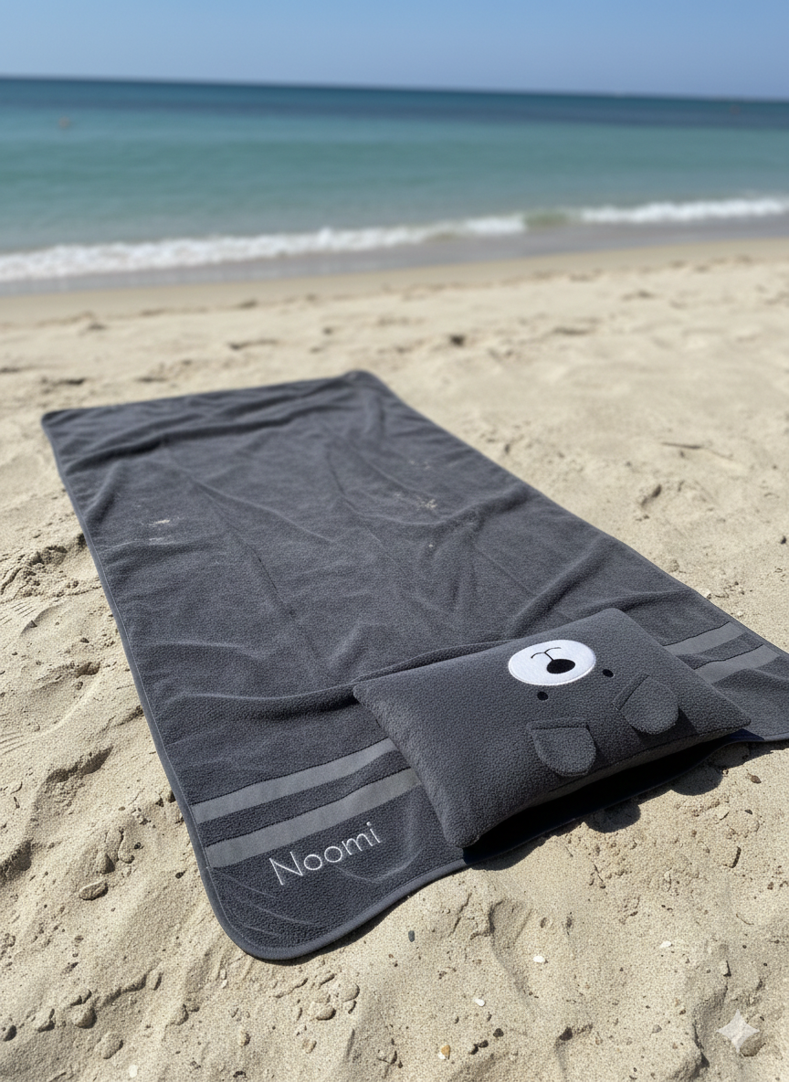 Rustig ontworpen handdoeken met een afneembaar nekkussen, geschikt voor strand, zwembad en thuis.